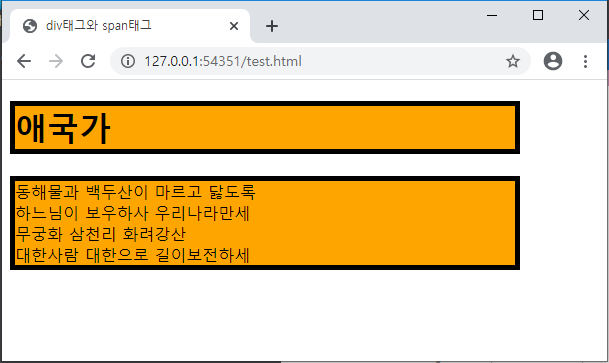 여러 태그를 묶어 CSS를 한번에 적용하는 태그 - 구역태그 혹은 박스태그라 부름 |