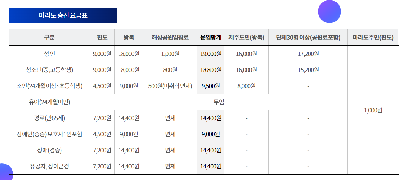 ## 마라도 가는 배 요금