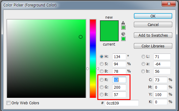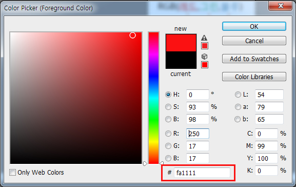 1) RGB코드 알기 - 포토샵에서 컬러 픽커를 눌러서 색상의 코드를 알아내면 된다.
