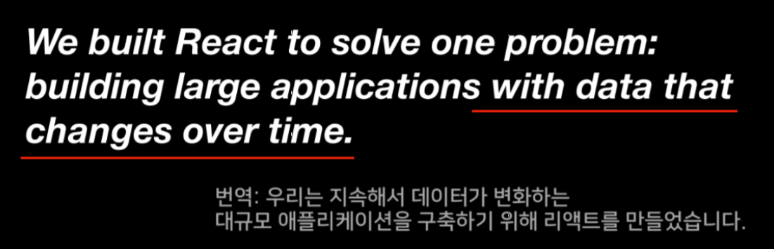- 위 상황에서 문제점을 느낀 페이스북에서는 대규모프로젝트를 생성시 편하게 사용할 리액트를 새롭게 만듭니다.