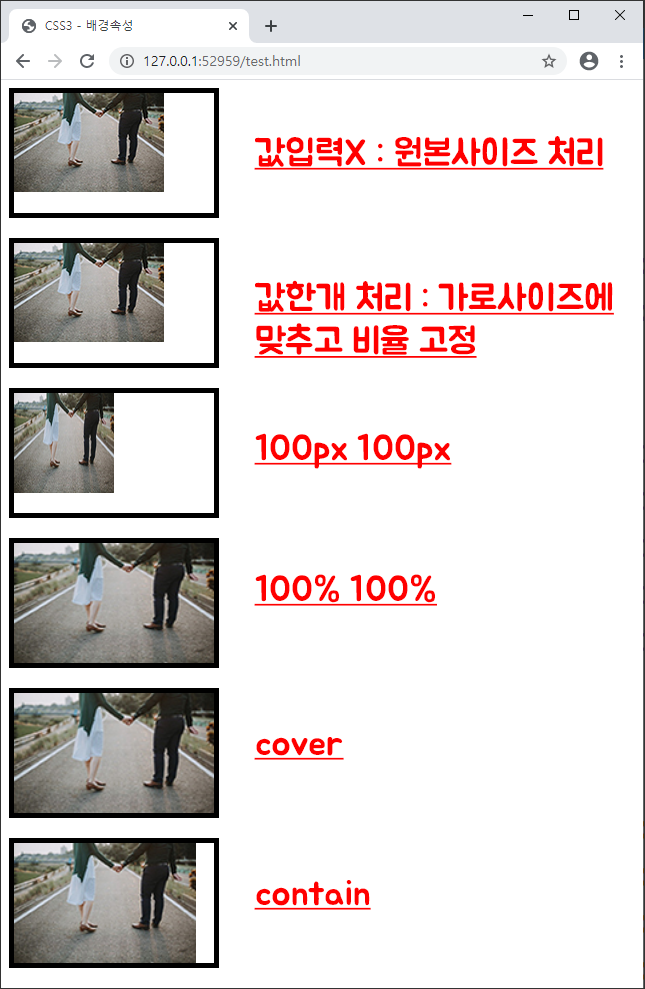 - 배경이미지의 크기를 지정하는 속성