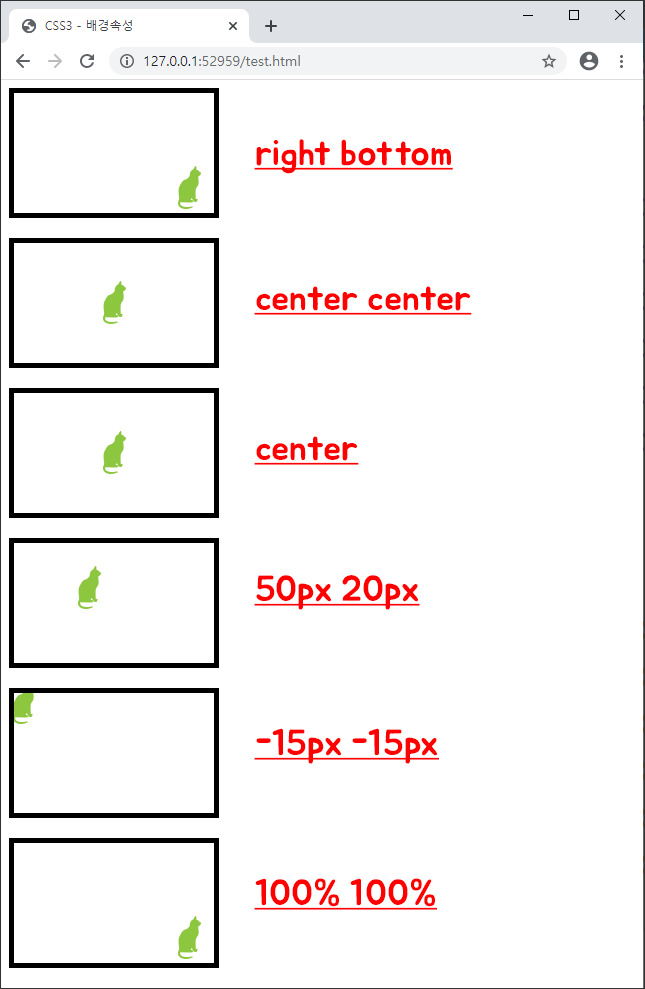 - 배경이미지의 위치를 지정하는 속성