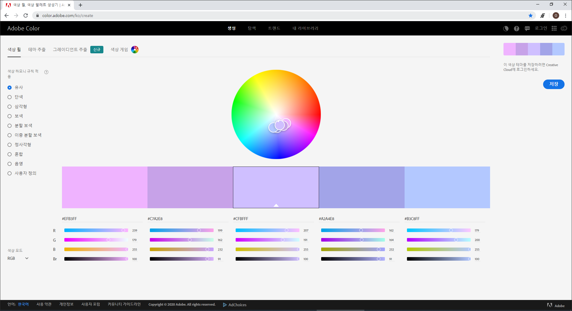 주소 : https://color.adobe.com/ko/create