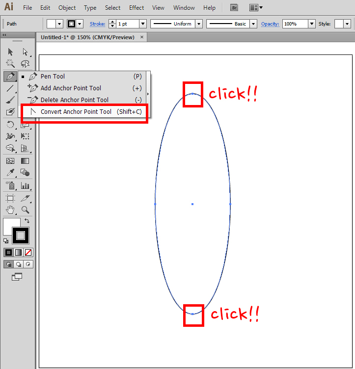 convert point툴로 모서리 뾰족하게 만들기