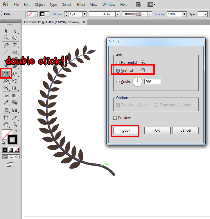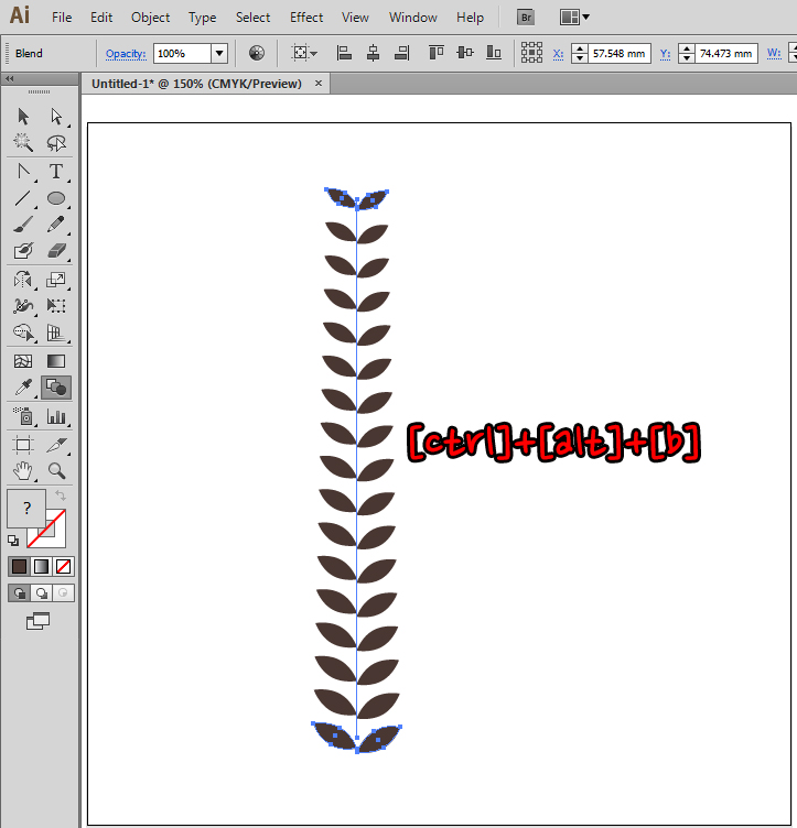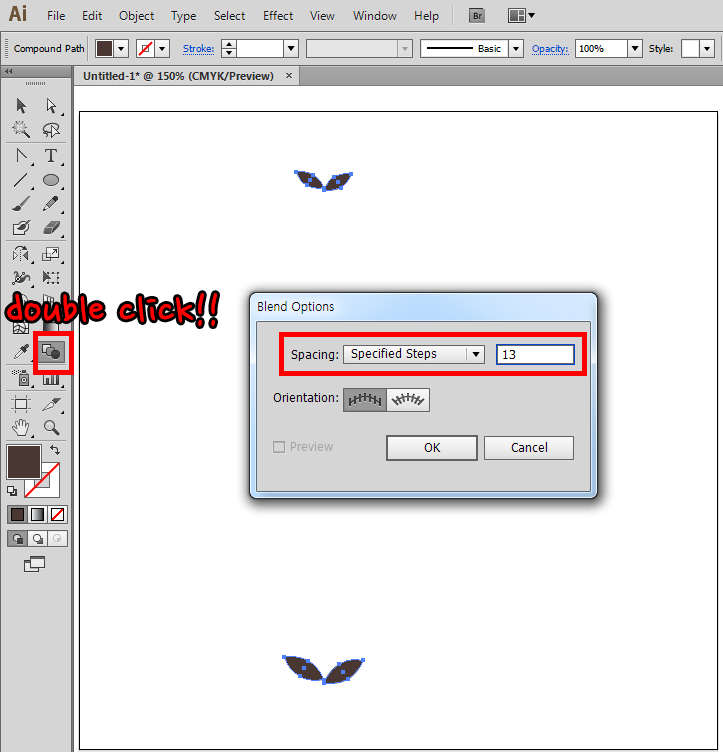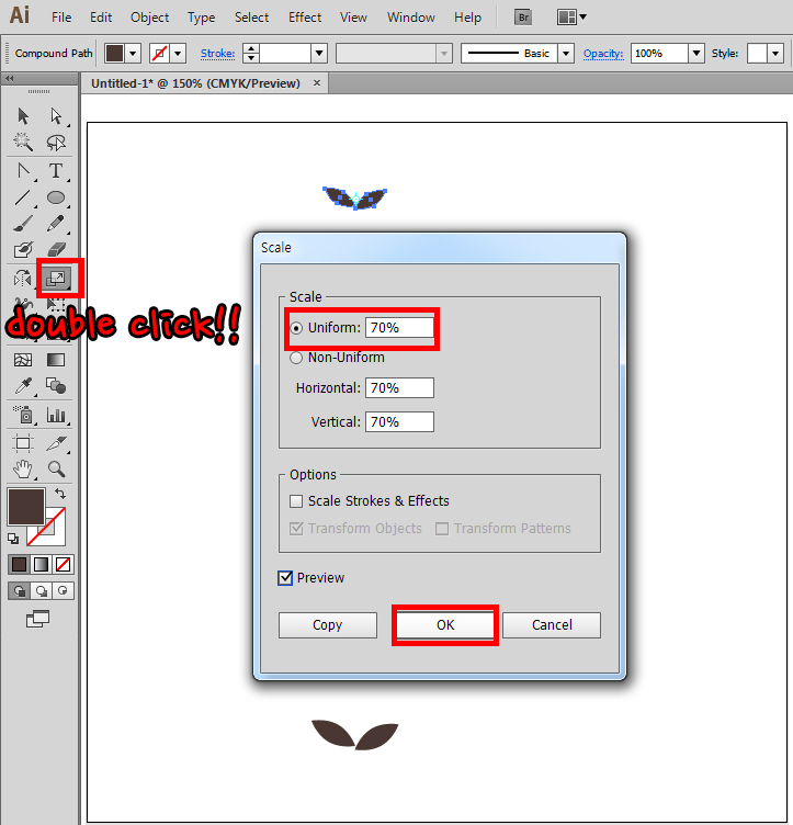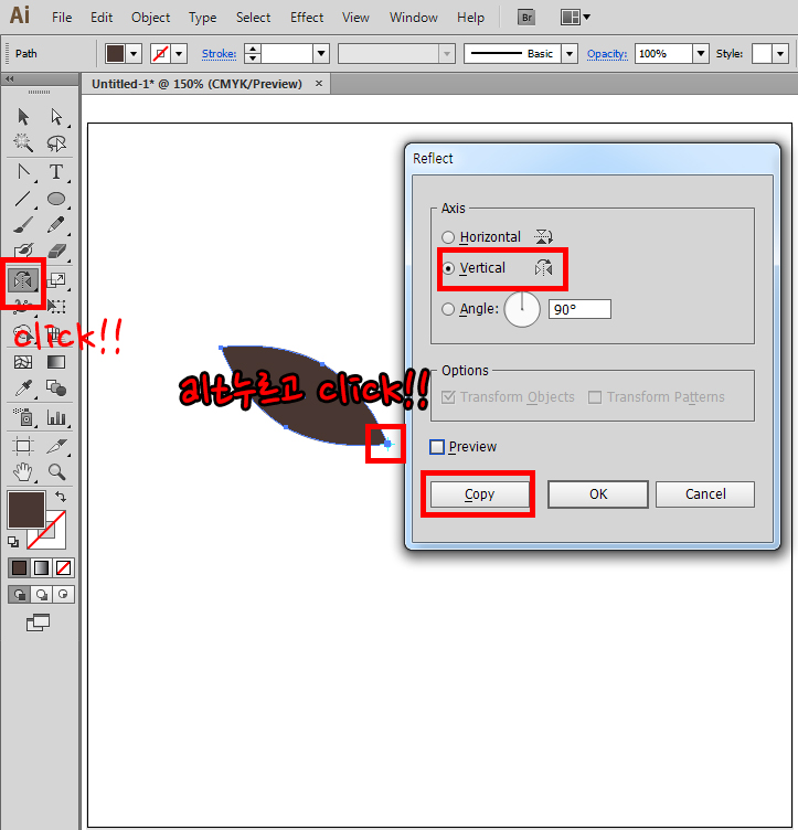오브젝트를 아래로 내리고 하나의 도형처럼 인식([object]-[compound path])