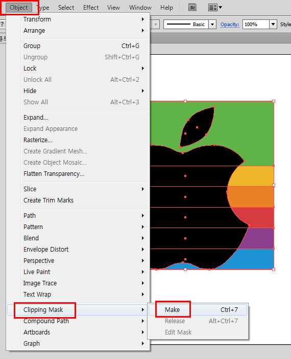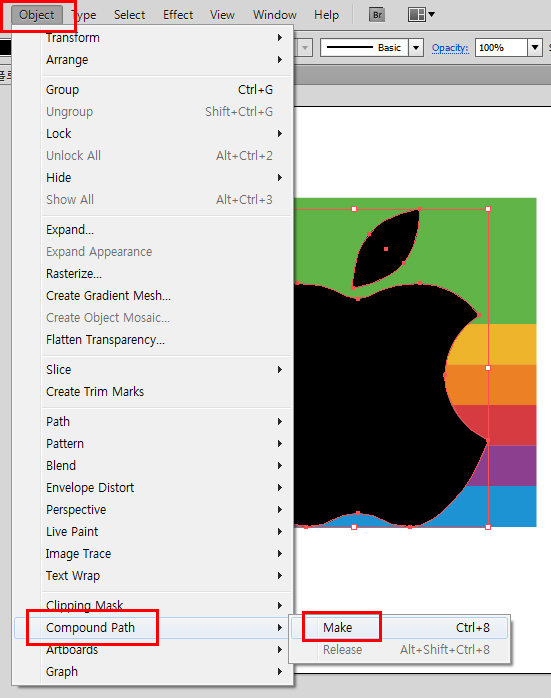 3. 사과의 잎부분과 사과 부분을 [Compound Path]처리