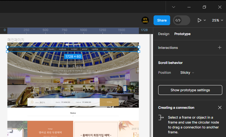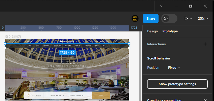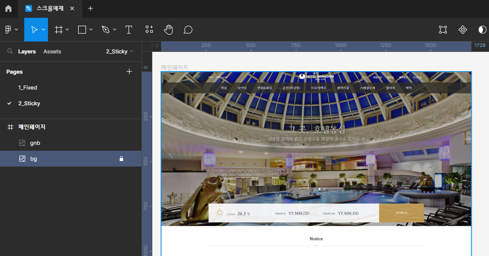- Scroll width parent : 기본 값으로 프로토타입 실행에서 스크롤 이동 시 자신의 위치에 고정된 상태를 의미합니다.