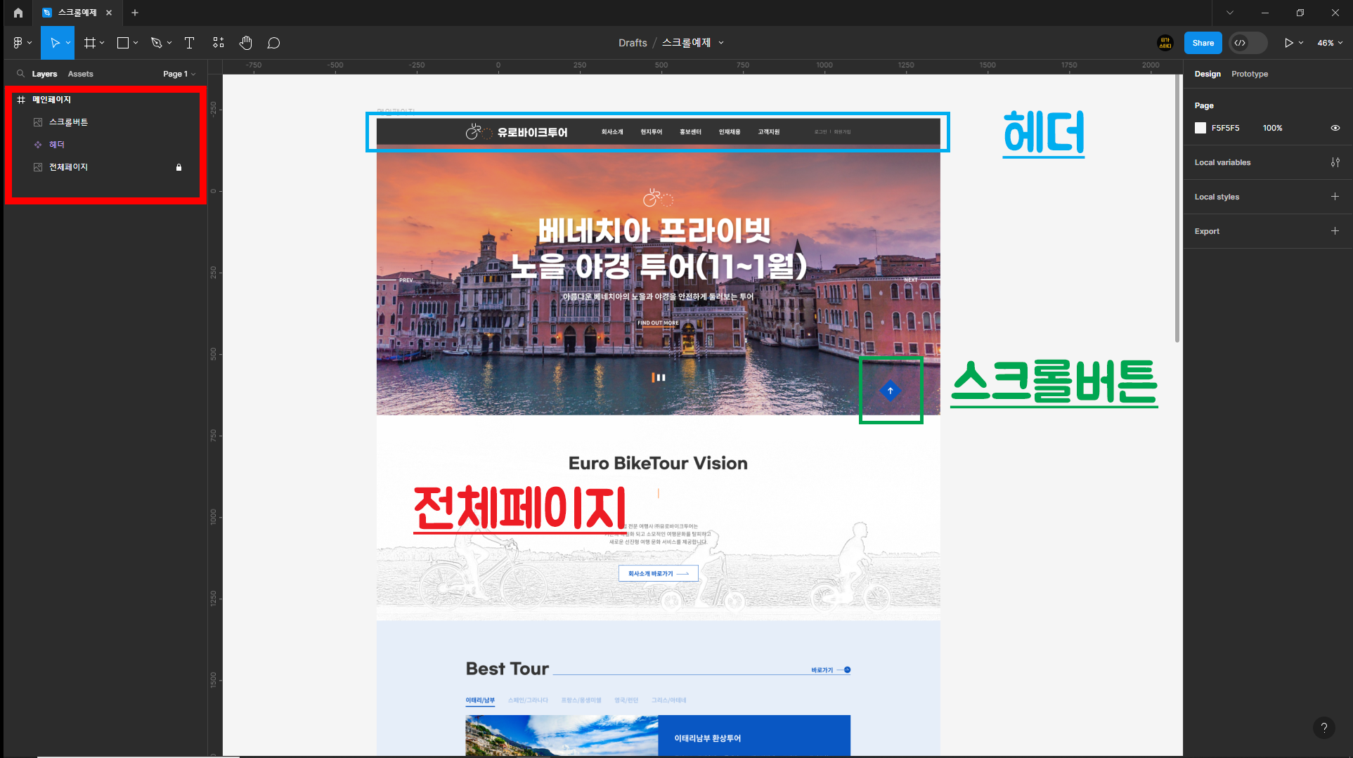 - 실제로 프로토타입에서는 스크롤탑버튼을 누르면 상단으로 올라가야 합니다.