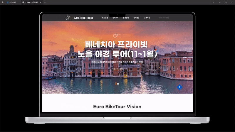 - 이번에는 스크롤 이동시 메뉴가 상단에 붙는 것이 확인이 됩니다.