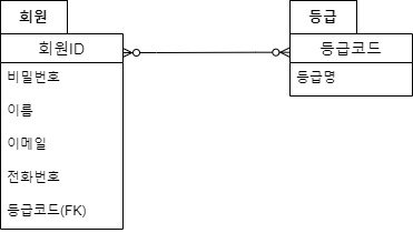 - 만약 위의 테이블에서 새로운 회원이 추가되는 경우 등급정보가 없다면 등급코드를 임의의 값을 넣어야 합니다.