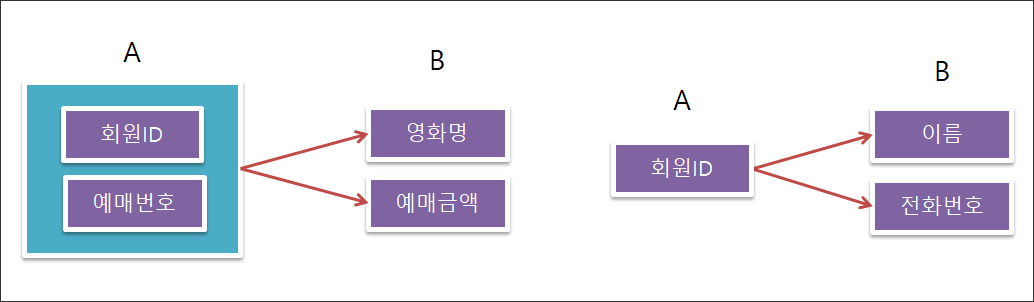 - 회원ID가 이름과 전화번호를 종속하고 있는 것입니다.