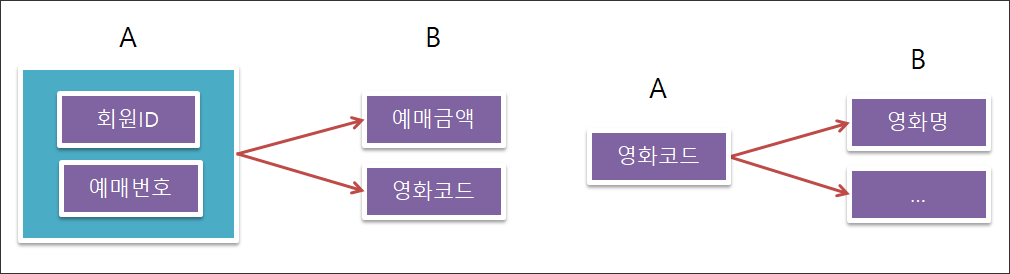 - 함수적 종속성이란 A → B이면, B는 A에 함수적으로 종속된다고 말합니다.