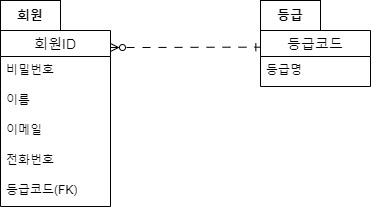 - 위의 테이블은 회원과 등급테이블에서 등급코드가 같은 것을 찾는 것입니다.