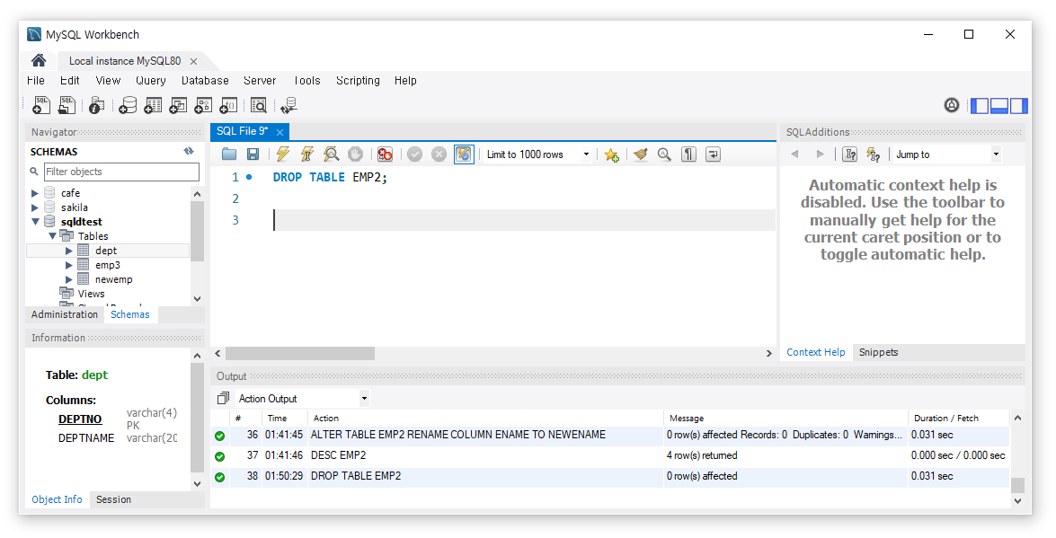 - 테이블을 삭제한 경우는 새로고침을 하지 않아도 바로 적용됩니다.