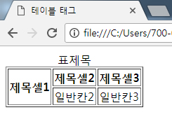 <th colspan="3">제목셀1</th>