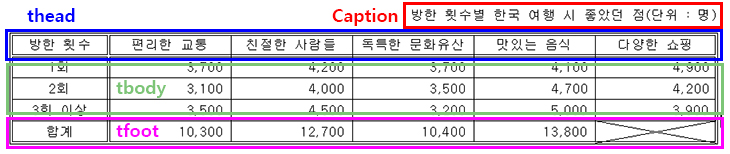 4) thead, tbody, tfoot을 사용하지 않아도 웹 표준에 오류 없음