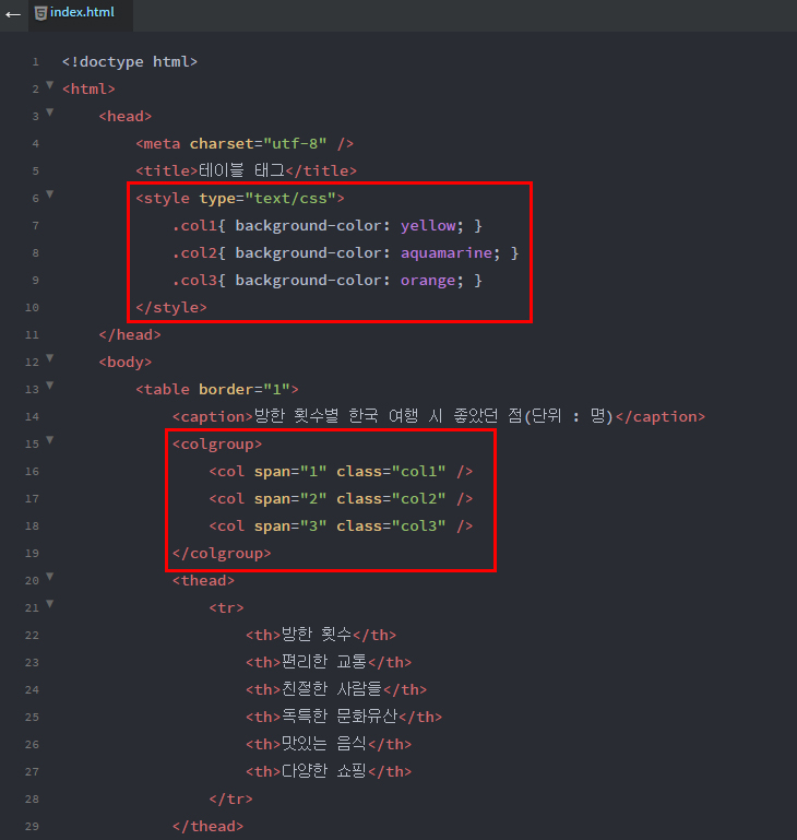 6. HTML5에 새로 나온 테이블 열 그룹 태그