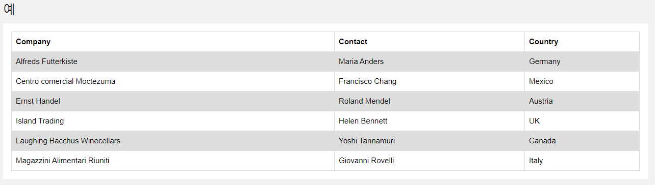 | th | 테이블의 제목 셀(칸)을 의미하는 태그. 부모인 tr안에 있어야 한다. css기본값은 글자가 굵게 처리되고 셀에서 가로 가운데 정렬. |