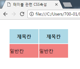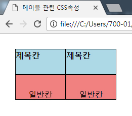 - border-spacing을 주지 않으면 셀간의 여백이 자동으로 발생된다.