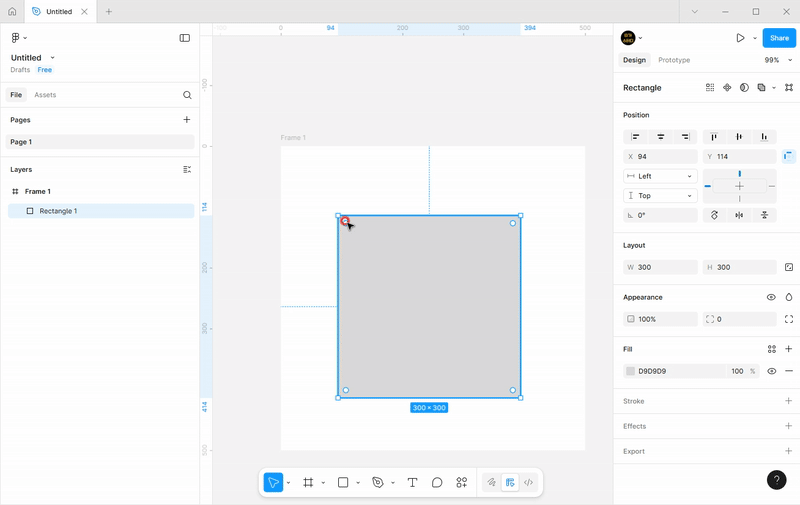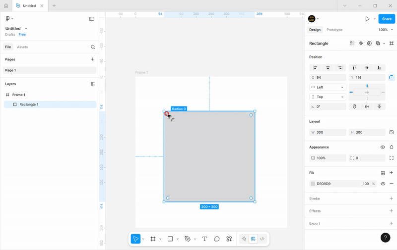 - 위 그림에서처럼 사각형을 선택했을 때 가장자리에 나오는 둥근 것을 위젯이라고 하는데 당기면 모서리를 둥글게 할 수 있습니다.