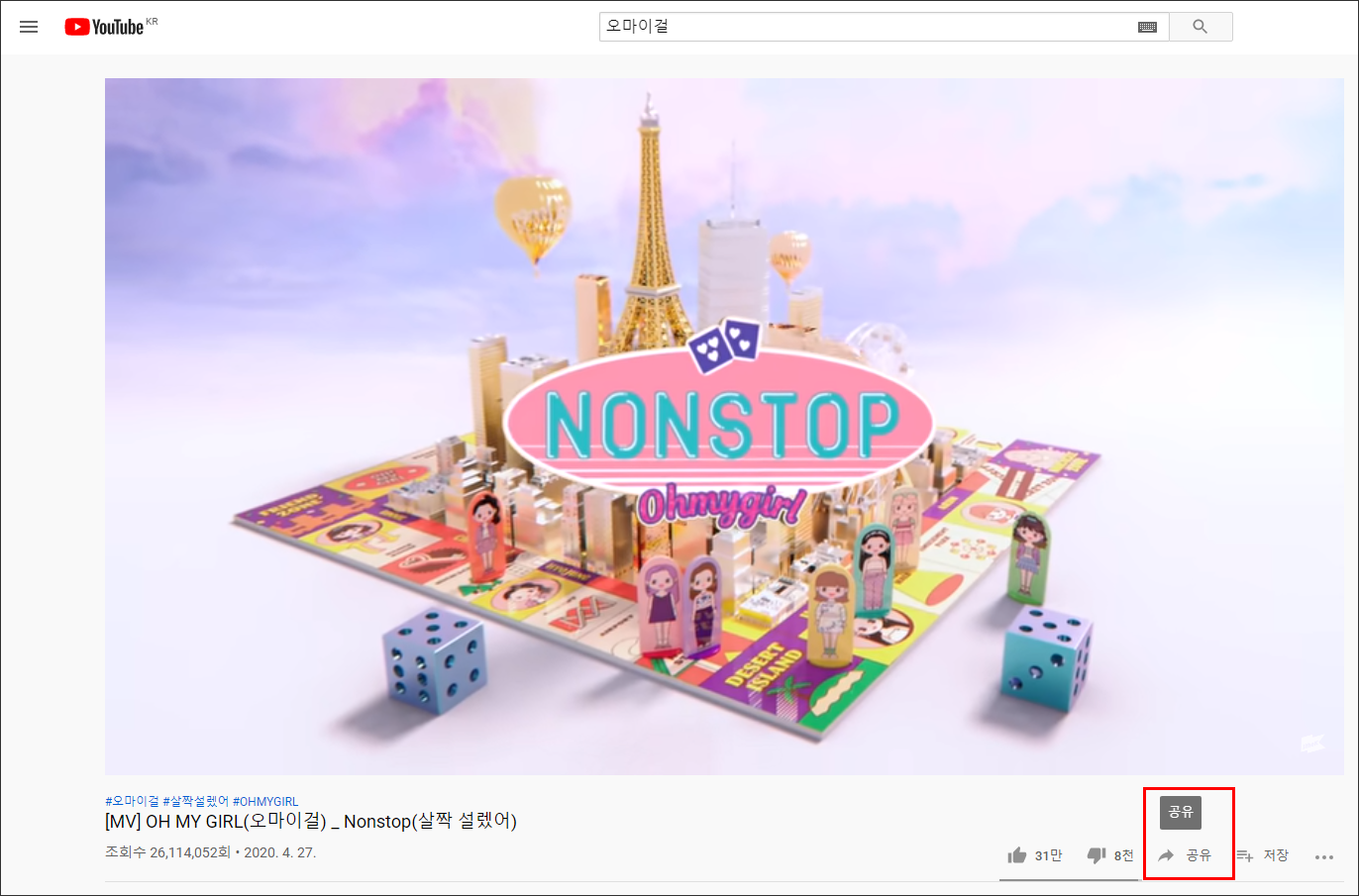3) 영상의 공유버튼 클릭