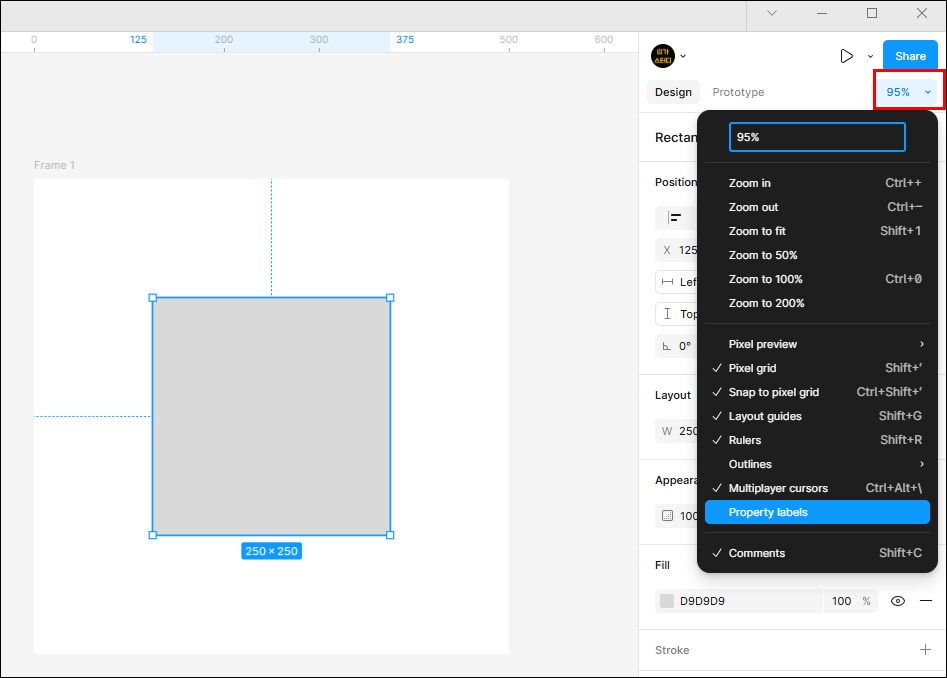 - 디자인 패널의 %부분을 클릭하면 위와 같은 드롭다운메뉴가 나옵니다.