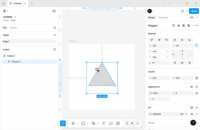 - 다각형 도형은 도형 툴의 드롭다운메뉴에서 Polygon으로 찾을 수 있습니다.