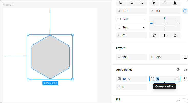 - Appearance에서 Corner radius를 변경하면 모서리를 둥글게 처리할 수 있습니다.