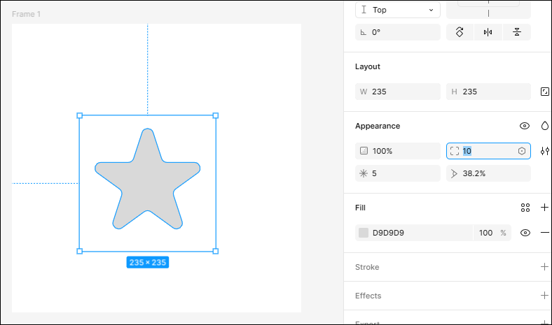 - 디자인 패널의 Appearance에서 count부분의 숫자를 변경하면 각형이 변경됩니다.