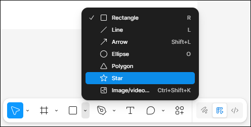 - 별 도형은 도형 툴의 드롭다운메뉴에서 Star로 찾을 수 있습니다.