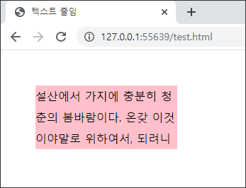 - 글자가 영역보다 많으므로 밑으로 내려가게 된다.