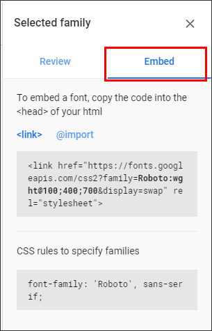 - CSS로 폰트CSS를 불러올 수 있도록 코드를 붙여넣는다.