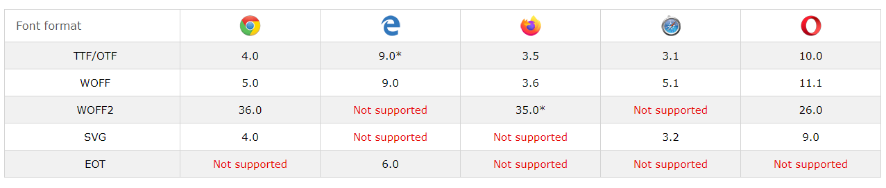 - 보통 [WOFF]확장자를 사용하면 대부분의 브라우저에서 인식이 가능