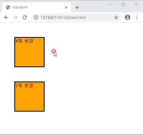 - 두번째 오렌지 박스에 마우스를 올리면 x축만 이동