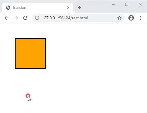 - 마우스 오버시 오렌지 박스가 자연스럽게 45도 회전하는 것을 확인할 수 있다.