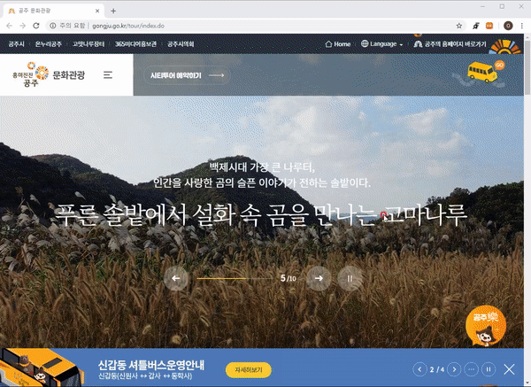 - 예시 : http://www.gongju.go.kr/tour/index.do