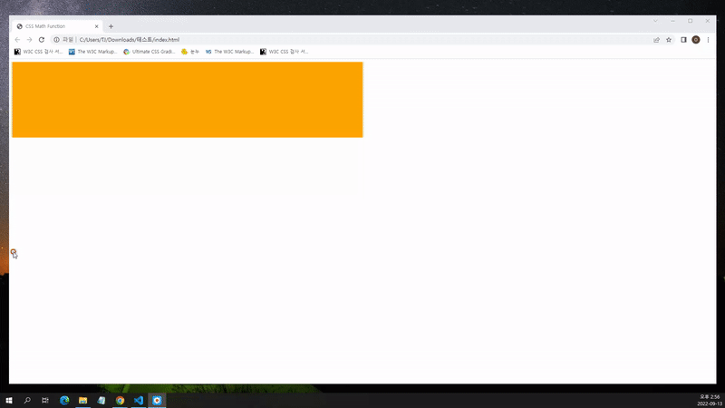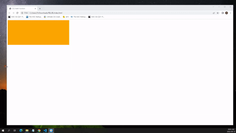 - .box02는 상대적으로 100%에서 100px을 뺏기 때문에 창 사이즈를 조절해도 좌우 여백이 항상 50px로 고정됩니다.
