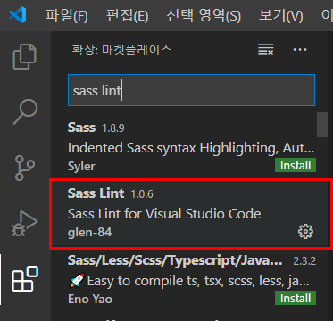 ** 최근에(2022년) [Sass Lint]는 지워진듯합니다. 위의 [Sass]를 깔아도 자동완성이 되니 설치해보세요.
